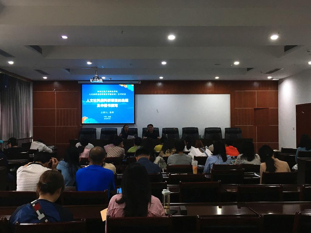 9月4日下午,由校科研处、文化产业发展研究中心、四川文化产业普及基地主办的人文社科类科研项目申报培训系列讲座“科研项目的选题及申报书撰写”在明慧楼503会议室举办。本次讲座由南京师范大学美术学院教授,博士生导师,视觉传达设计系主任,设计艺术学博士张犇先生主讲。