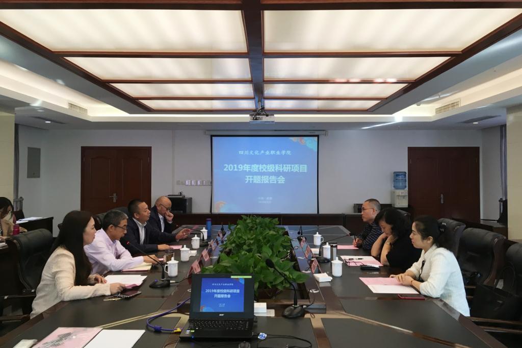 9月25日上午,科研处组织召开了四川文化产业职业学院2019年度校级科研项目(含校级科研创新团队)开题报告会。四川交通职业技术学院科研处处长王晓琼教授、西南石油大学学报中心副主任李桂东副教授、成都大学美术与设计学院视觉传达系主任李星丽副教授莅临会议,并与校教务处处长陈敬贵教授、发展规划处副处长向天华教授、科研处副处长詹颖副教授一起担任此次开题报告会的评审专家。学校副院长肖必恒发表致辞,来自影视学院、文化商学院、基础教学部等教学单位和部门的25个项目(含团队)汇报人及科研处工作人员一同参加了本次会议。