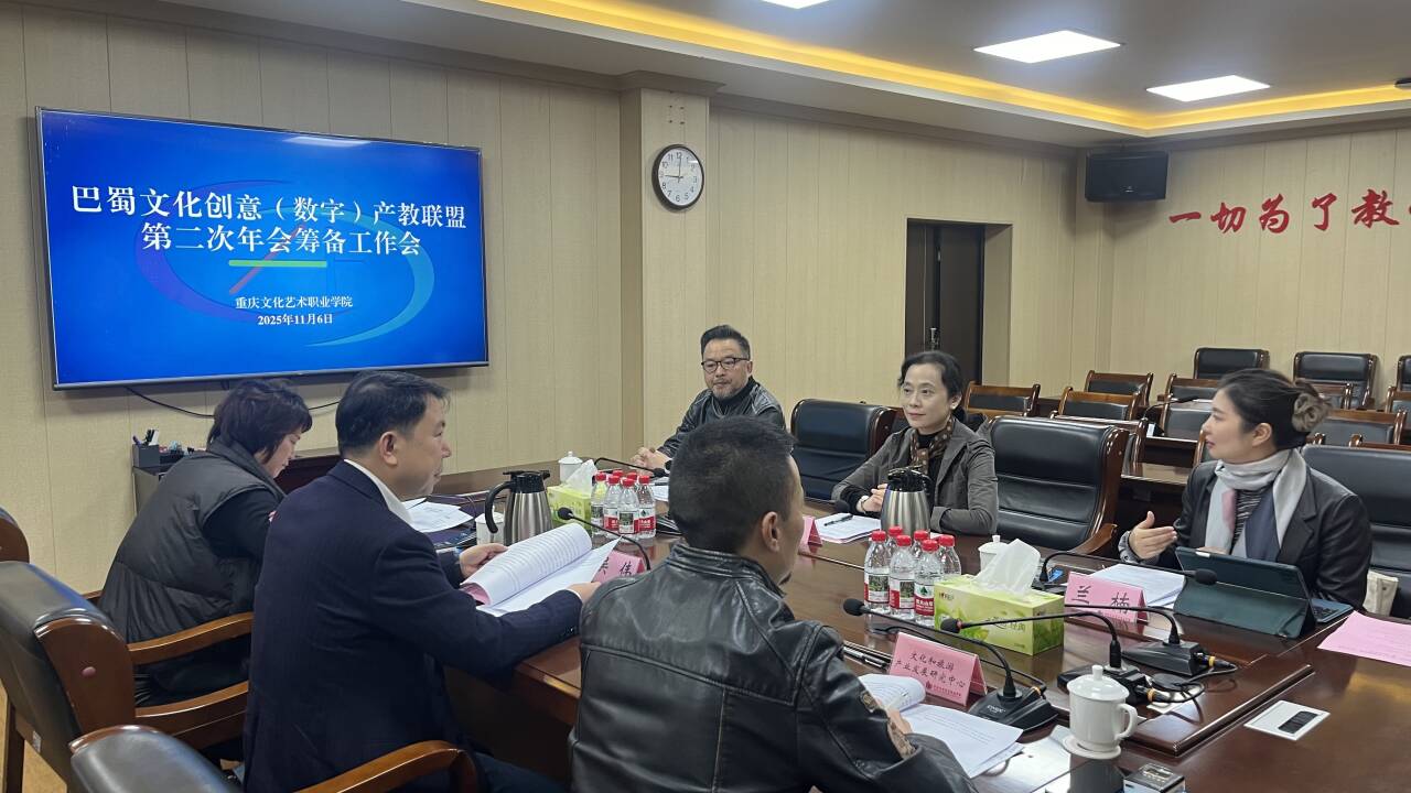 11月7日,巴蜀文化创意(数字)产教联盟年度工作推进会在重庆文化艺术职业学院举行。我校党委委员、副院长黄萍,产教融合处、巴蜀文化数字研究院、重庆文化艺术职业学院文化和旅游产业发展研究中心等部门(单位)负责人及相关人员参加会议。会议由重庆文化艺术职业学院党委委员、副院长吴伟主持。